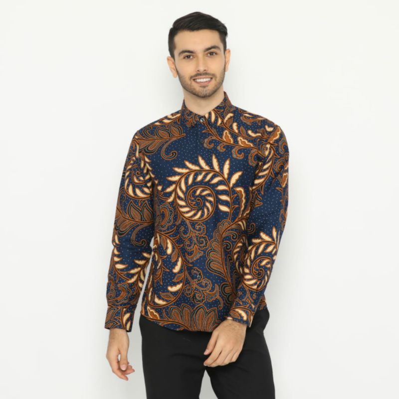 Brown Fashion Kemeja Batik Slim Fit Longsleeve Pria - Kemeja batik modern untuk casual dan formal look - Multiwarna