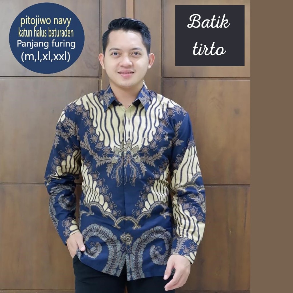 Name: Tirto Batik Pitojiwo Navy Kemeja Baju Pria Lengan Panjang Motif Elegan Full Furing Tirto
