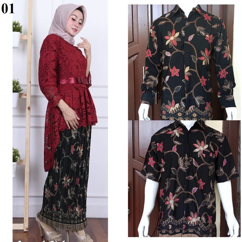 Name: Deza Batik Couple Stelan Abaya Brukat Dan Rok Plisket Panjang Dan Kemeja Tangan Pendek Dan Panjang