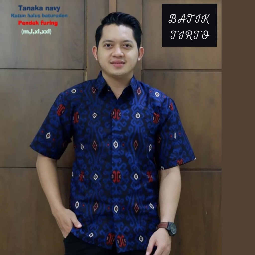 Name: Tirto Batik Tanaka Navy Kemeja Baju Pria Lengan Pendek Motif Elegan Full Furing Tirto