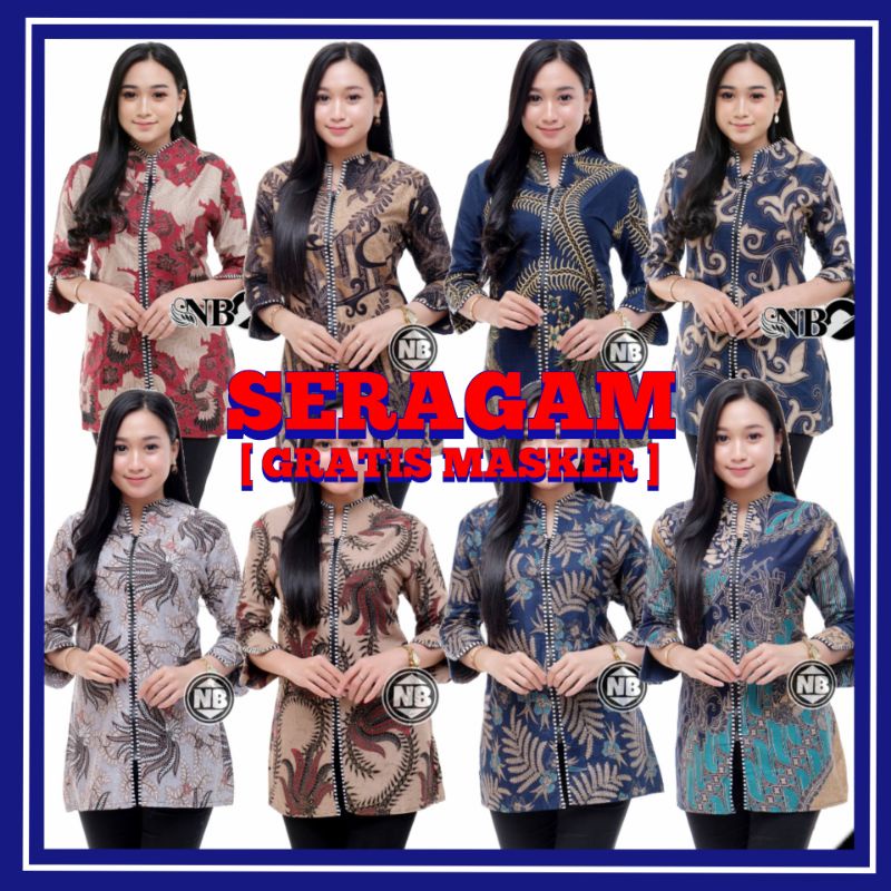 Name: Blouse Batik Premium | Blus Atasan Blazer Kantor | Seragam | Resleting Depan Eksklusif