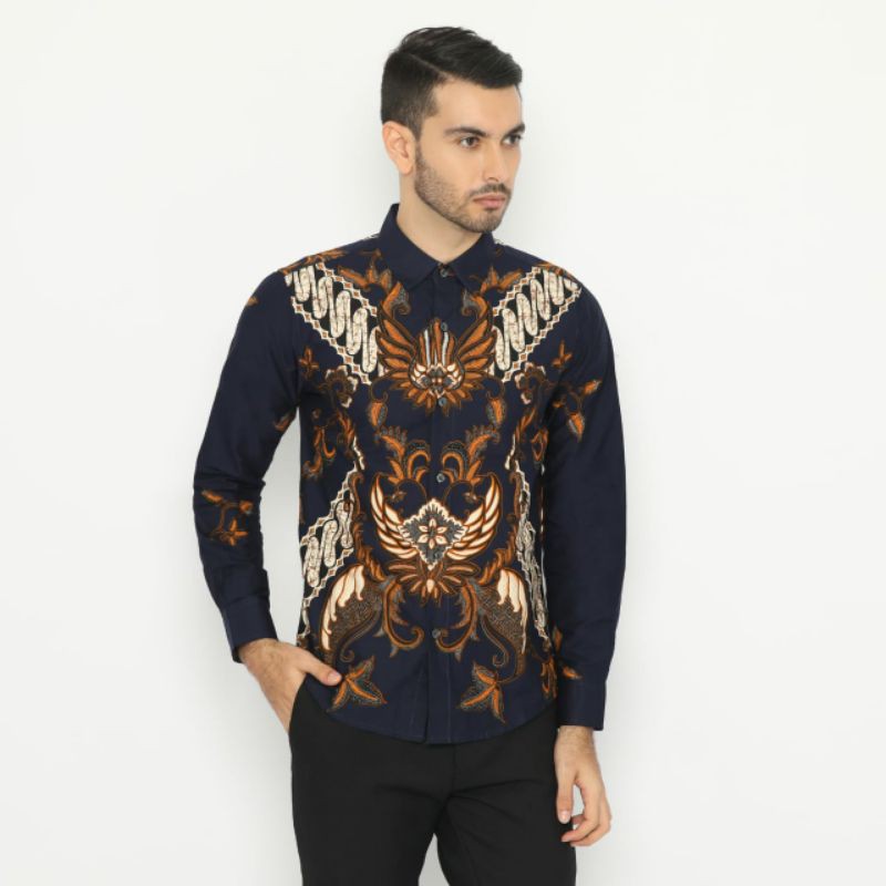 Brown Fashion Kemeja koko Slim Fit Longsleeve Pria - Kemeja batik modern untuk casual dan formal look - Multiwarna