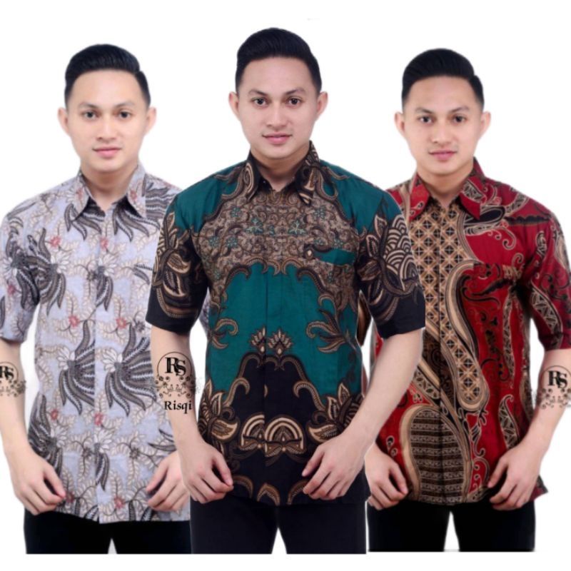 Baju Batik Pria Lengan Pendek Cocok di pakai di mana saja untuk Acara Resmi \ pakaian Sehari-hari dengan bahan kattun prima sehingga adem & nyaman