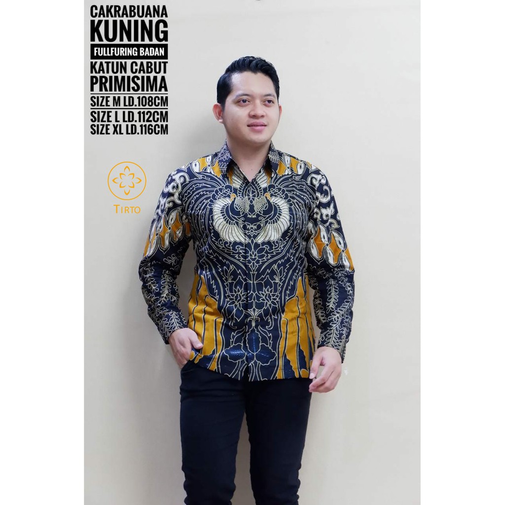 Name: Tirto Batik Reguler Fit Cakra Buana Kuning Kemeja Baju Pria Lengan Panjang Full Furing Tirto