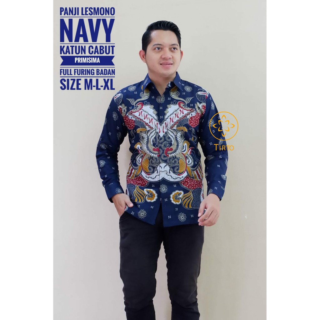 Name: Tirto Batik Navy Premium Kemeja Baju Pria Lengan Panjang Motif Elegan Full Furing Tirto